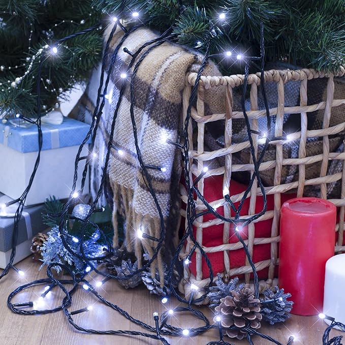 - [Ideal for Holiday Decorations] - The Christmas lights outdoor with green wire blends well with the night, perfect for indoor and outdoor decorations, such as trees, classrooms, yards, gardens, patios, walls, balconies, fences, porches, roofs, lawns and more, creating a joyful and festive atmosphere.