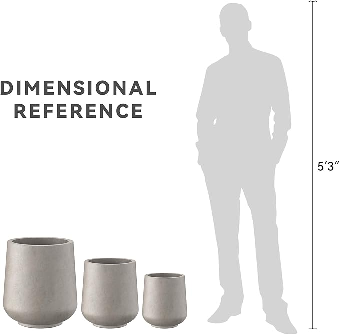 Kante 15.3"+11.6"+8.2" Dia Round Concrete Planter, Large Outdoor Indoor Planter Pots Containers with Drainage Holes and Rubber Plug for Home Garden Patio, Buff Concrete