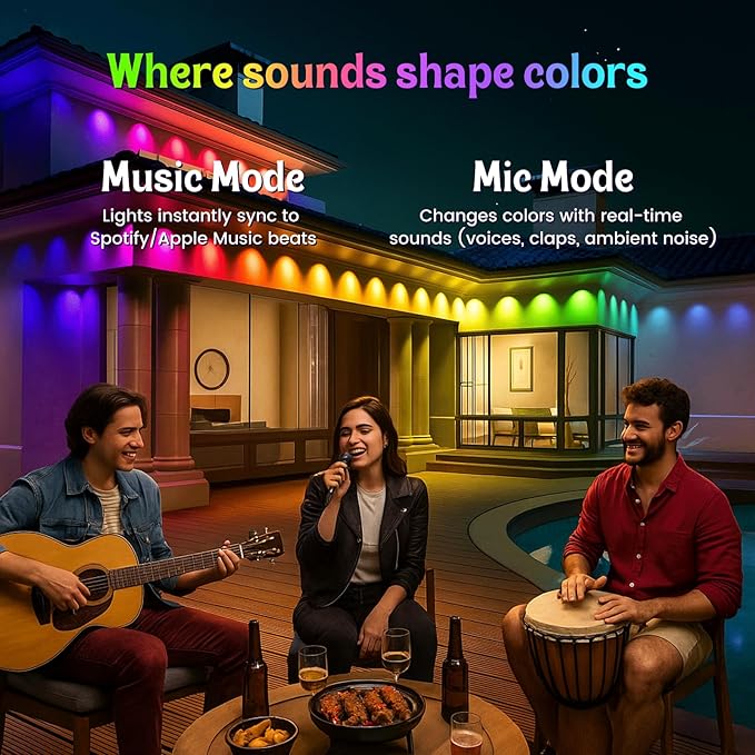 - WiFi Connectivity (No 5G Support): Easily control your lights through WiFi, compatible with 2.4GHz networks. Please note, 5GHz WiFi is not supported. Perfect for those looking to set up permanent outdoor lights for house décor with WiFi-based control.