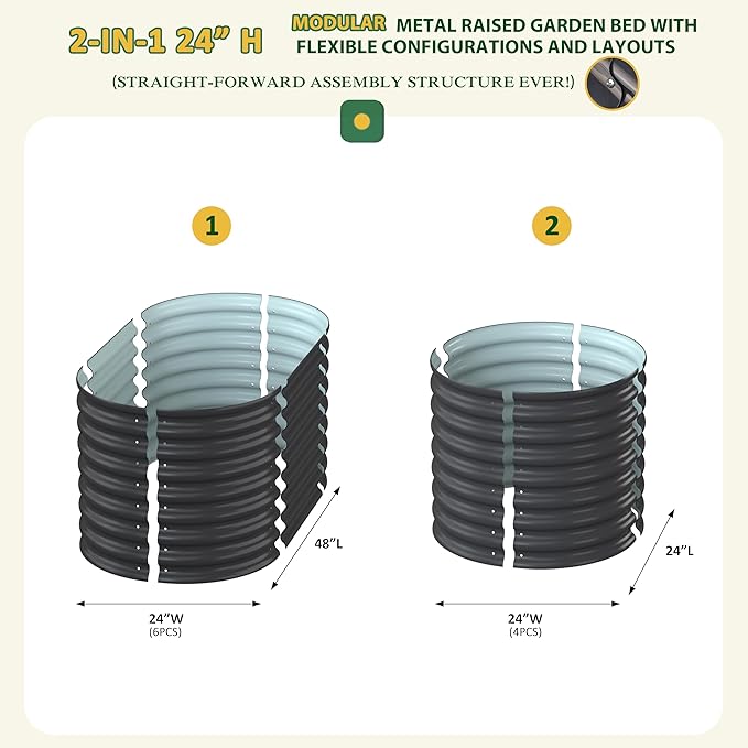 - 2-IN-1 MODULAR RAISED GARDEN BED - The fun you can get is that when you are tired of the same old raised garden bed shape and want to give your planting area a makeover, our modular raised garden bed fully support you to make your own design! 2 shapes for you to choose the best one for what you want.