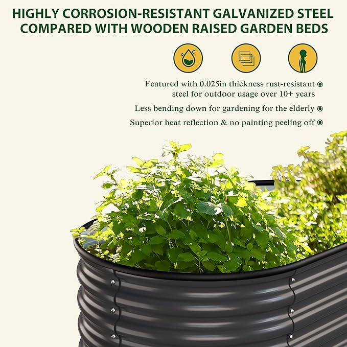 - FOR YOUR SAFETY - We have equipped this 304 stainless steel raised garden bed with a protective rubber strip around the edge of the raised planter box. Also compared to square garden beds, the rounded design of our raised garden beds outdoor will make it easier for you to walk around while working without being hurt by sharp right angles.