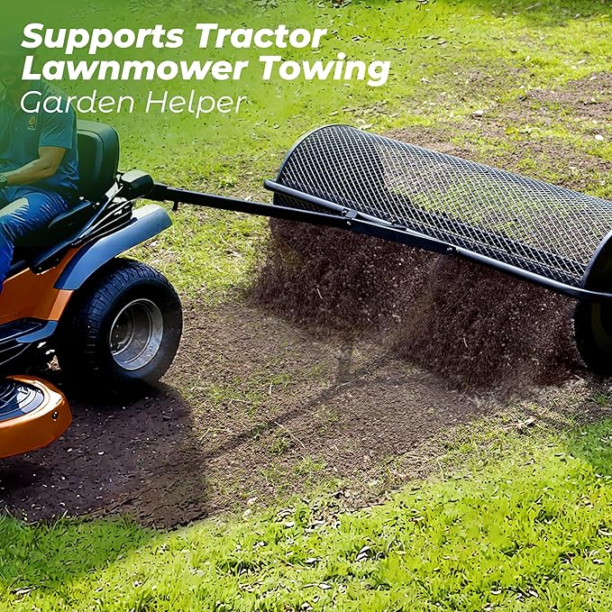 - MANUAL PUSH & TOW-BEHIND DUAL MODES: Equipped with an ergonomic T-handle for manual push/pull operation and compatible with garden machinery for tow-behind use. With the upgrade T-handle to avoid broken and makes it more durable and sturdy. Ergonomic rubber handle grips for non-slip and comfortable. Flexible functionality meets various lawn sizes and user needs—perfect for homeowners and professional landscapers alike.