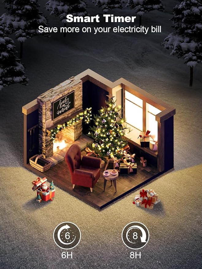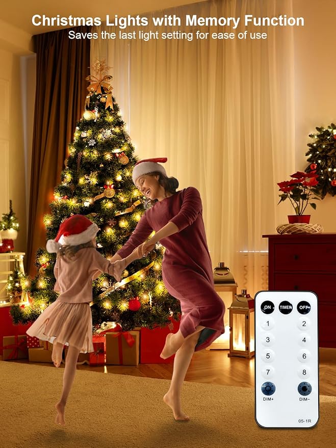 - 【Easy to Operate】Equipped with a remote control, allowing you to control the Christmas tree lights within a 10-meter radius at any time, which is more convenient than traditional string lights with buttons. It comes with 8 built-in lighting modes: combination, waves, sequence, Slo-Glo, chase, slow fade, flash, and steady light, to meet your needs on different occasions. Its brightness can also be adjusted in four levels, from 25% to 100%, letting you enjoy beautiful dynamic lights while saving energy.