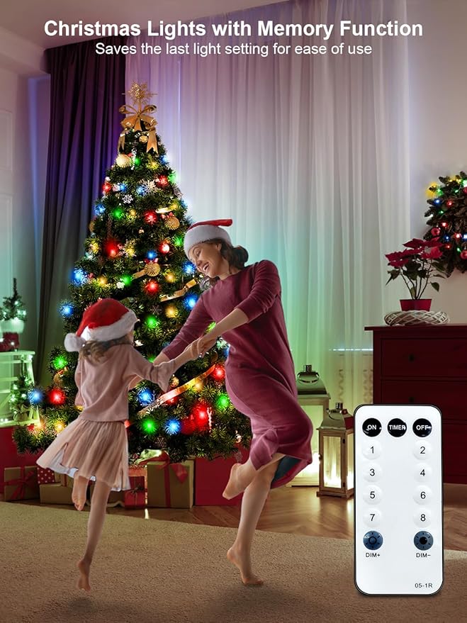 - 【Easy to Operate】Equipped with a remote control, allowing you to control the Christmas tree lights within a 10-meter radius at any time, which is more convenient than traditional string lights with buttons. It comes with 8 built-in lighting modes: combination, waves, sequence, Slo-Glo, chase, slow fade, flash, and steady light, to meet your needs on different occasions. Its brightness can also be adjusted in four levels, from 25% to 100%, letting you enjoy beautiful dynamic lights while saving energy.