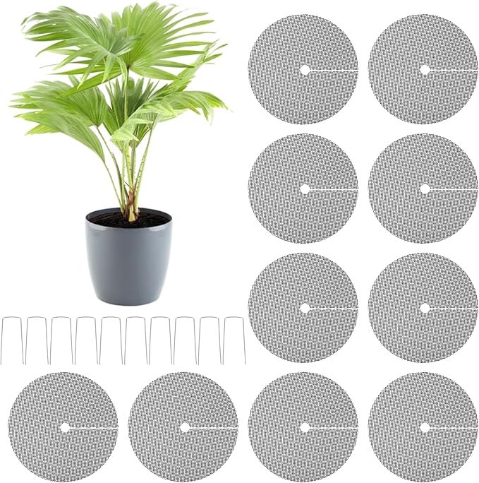 - Cuttable Size: Each plant pot grid measures 11.8 inches in diameter with a 1-inch center hole. You can choose or trim the protective mesh according to the pot size to ensure full coverage of the soil surface, with the edges secured using metal grounds stakes