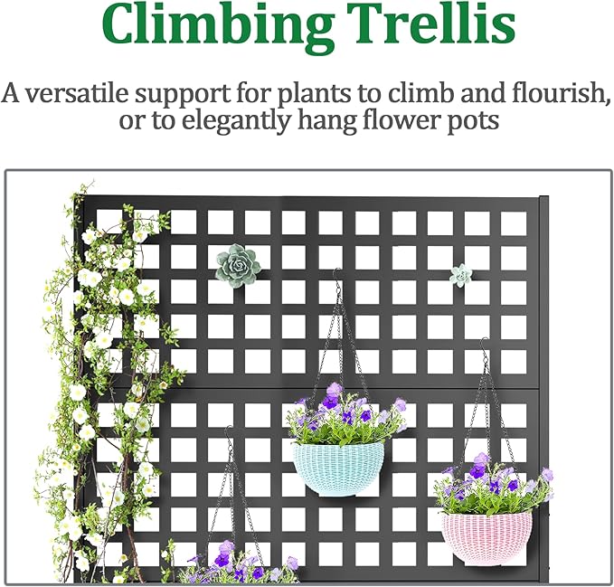 - Multifunctional Garden Essential: This metal planter and trellis combination offers a highly adaptable solution for outdoor spaces. The flower bed can function as a raised planter for vegetables and herbs, a sturdy trellis for climbing flowers and vines, or even as a privacy screen to add a sense of seclusion to your garden.