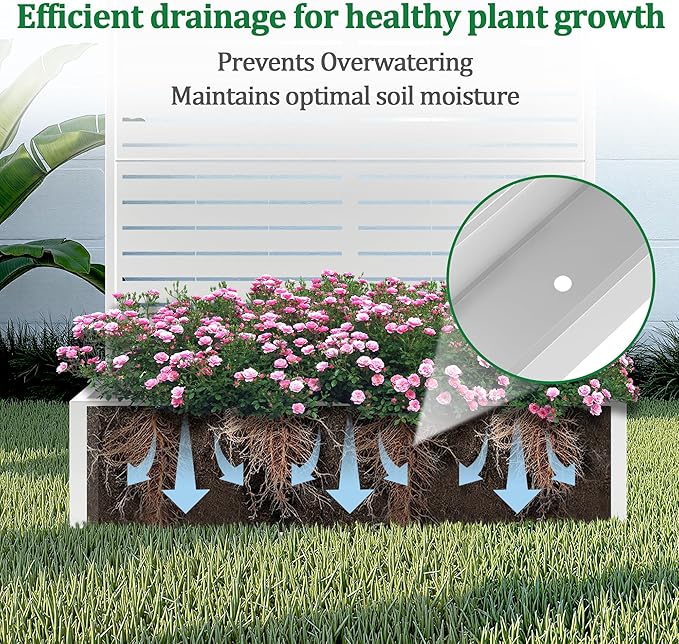 - Optimal Water Management: The planter with trellis features a deep planting bed, offering generous space for healthy root development. The raised garden bed also comes with built-in drainage holes that efficiently prevent water accumulation, helping your plants maintain proper moisture levels for optimal growth.