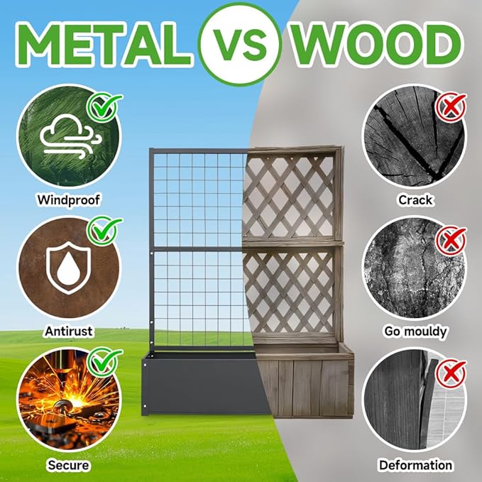 - Weather Resistant】Our metal planting boxes and grids are painted with high-temperature nano-fogging paint, which is rust-resistant and able to withstand a range of harsh weather conditions, including outdoor heat, rain and snow