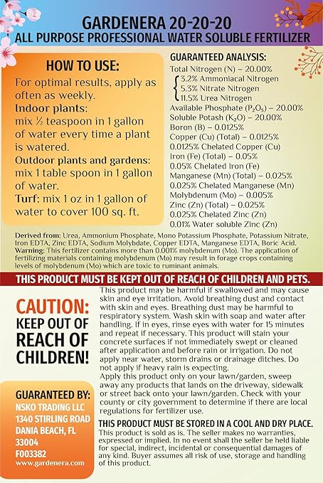 - π± Boosted Growth and Thriving Plants: Gardenera 20-20-20 All-Purpose Fertilizer πΏ provides a powerful boost to plant growth, resulting in healthier and more vibrant plants that flourish in any environment.
