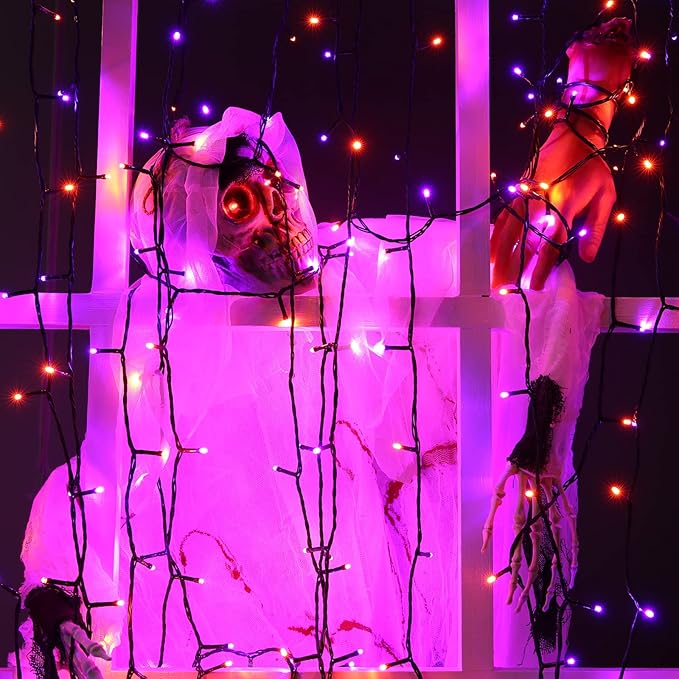 - Specification & Service: 200 bright LED on the 72ft green wire string lights (6.6ft lead cable included), Orange & purple fairy Halloween lights. About the product quality problem, please don't hesitate to contact us, we will give you a respond in 24 hours.