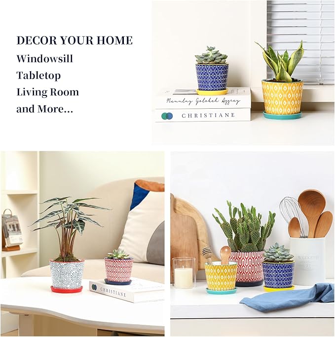 - 【GOOD QUALITY & EASY CLEANUP】These small pots for indoor plants are fired at high temperatures to ensure them withstand prolonged exposure to wind and sunlight without deformed, faded, or paint off. The complete smooth texture inner & outside makes clean a breeze. Let the indoor pots for plant always look fresh and new.