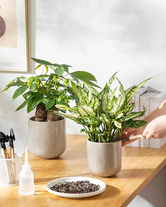 - 🎁Heartwarming Gift – Ideal for housewarmings, birthdays, holidays. Surprise your loved ones with a thoughtful and elegant touch of greenery. This ceramic planter set isn't just functional—it's a heartfelt way to bring calm, beauty, and life into any space.