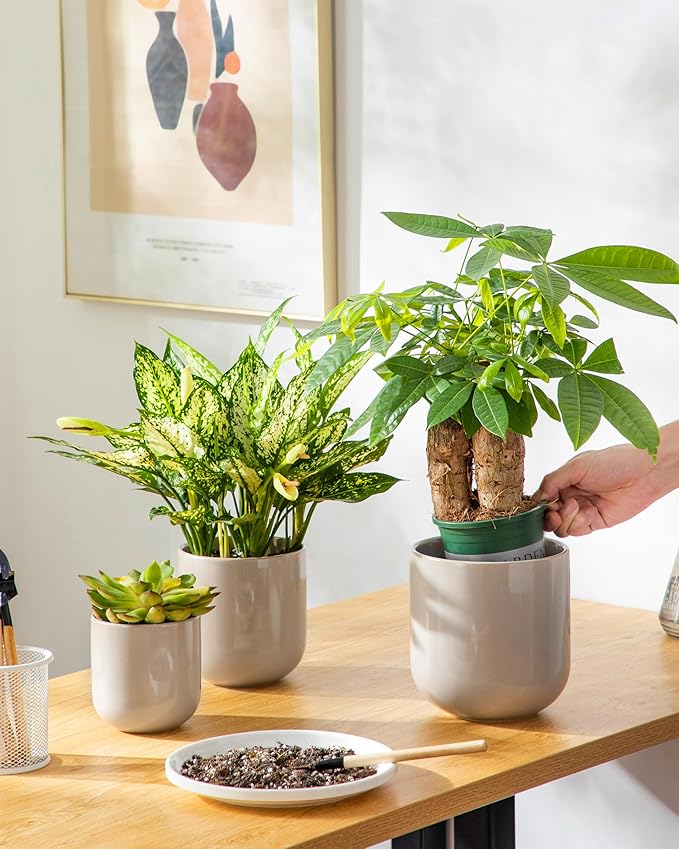 - 🏠Perfect Trio Set — Includes 3 ceramic flower pots in sizes 4", 5", and 6", ideal for various small planters, planters for indoor plants, succulents, cacti, herbs, or decorative flowers. A stylish choice for tabletops, windowsills, shelves, or any space in your home. Whether it's a cozy apartment or a spacious home, these planters make the space feel more alive.