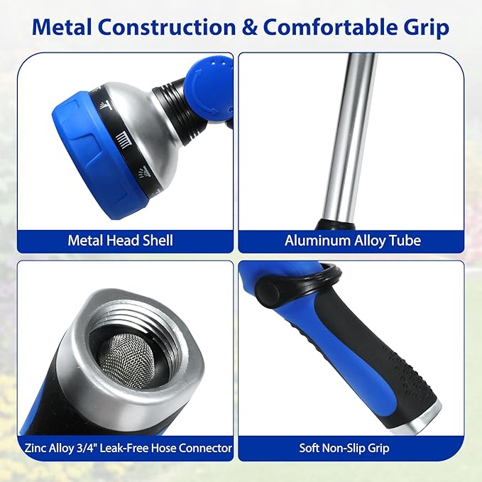 - 【Durable & Ergonomic】-- Constructed with a TPR handle, zinc alloy head and base connector, aluminum pipe, and plastic nozzle for a lightweight yet sturdy build. Ergonomic grip ensures comfort during use