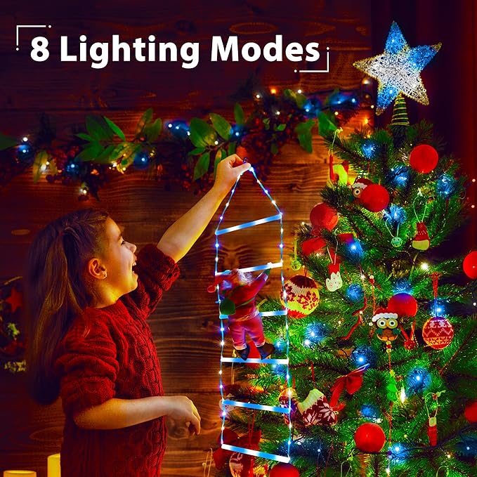 - 2025 Newest Christmas Lights - Unique-designed Christmas lights composed of a 2.5ft lighted rope ladder and a detachable Santa, will add a lot of festive atmosphere for your Christmas. This Christmas decorative light is perfect for home, garden, yard, window, porch, Christmas tree DIY decor