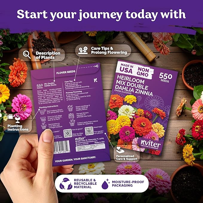 - Easy to Grow & Save: Heirloom zinnia seeds sprout fast indoors or direct-sown; cut above leaves for long vase life, then collect seeds for next season—sustainable gardening seeds in each packet.