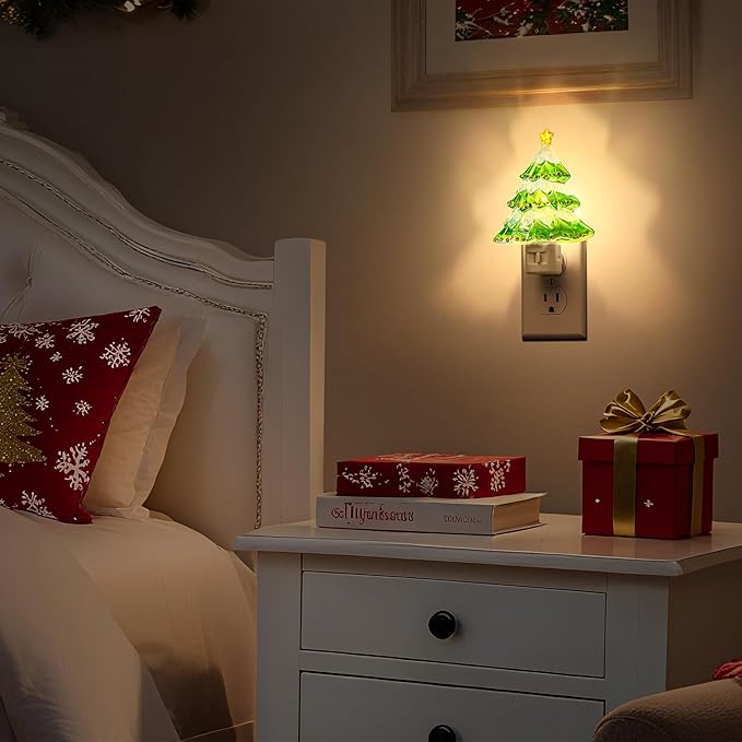 - Festive Decor: This Christmas tree night light (a practical plug-in wall night light) adds warm holiday cheer with its lifelike tree silhouette and delicate embossed details. Ready to use out of the box—just plug in, and its soft 3000K warm white glow brings lasting Christmas charm year after year.