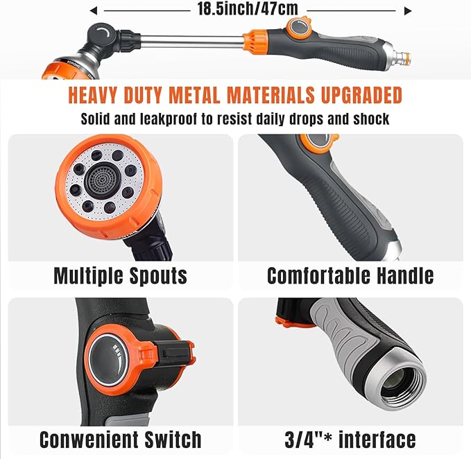 - 【Widely used & Universal Compatibility】:This garden hose wand is designed to fit standard 3/4'' hoses,which fits all standard garden hoses,and make it a practical choice for your garden, lawn, or irrigation needs
