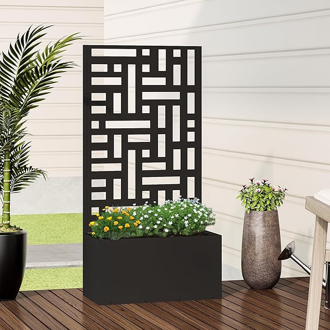 Casaphoria Metal Raised Garden Bed with Trellis, 47"x24"x12" Planter Box for Climbing Plants, Vegetables & Vines, Features Drainage Holes and Privacy Screen (Black-Helen)