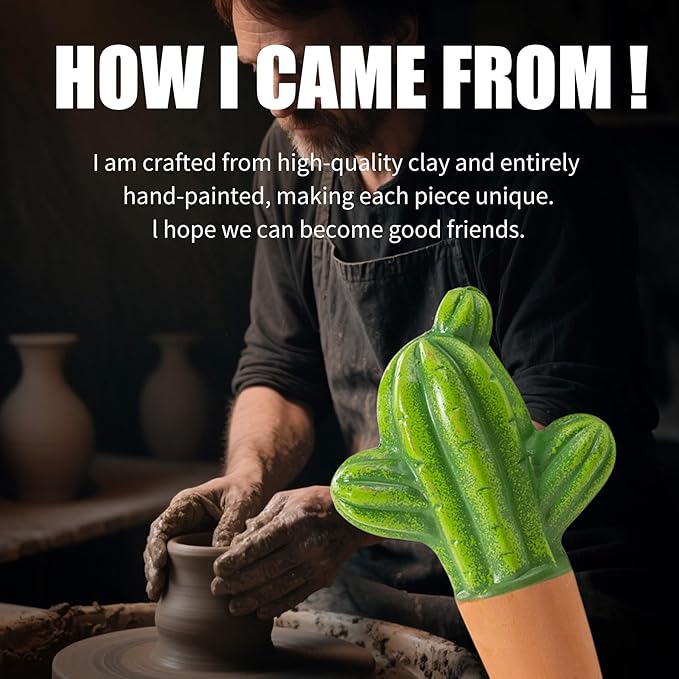 - Unique Handcrafted Cactus Design Adds Whimsical Charm: Elevate your plant decor with four distinct, artisanal cactus shapes, each showcasing unique character and vibrant color variations thanks to the handmade process. These aren't just plant watering devices; they are delightful decorative accents that infuse a playful desert vibe into your home, patio, or garden while performing their essential self watering spikes function.