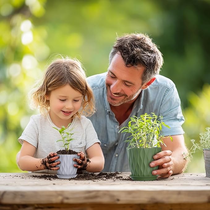 - 【Modern Wave Texture Design】With a simple modern aesthetic and a clean matte finish, this set of 7 plastic planter pots features a 3D wave-like texture, adding a touch of elegance to any space. Perfect for starting seedlings, or home/office decor, these pots for plants are ideal for gardening