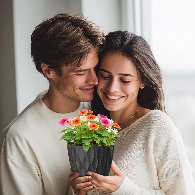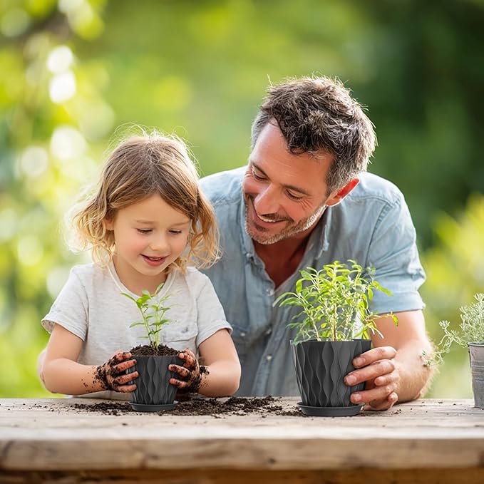 - 【Modern Wave Texture Design】With a simple modern aesthetic and a clean matte finish, this set of 7 plastic planter pots features a 3D wave-like texture, adding a touch of elegance to any space. Perfect for starting seedlings, or home/office decor, these pots for plants are ideal for gardening