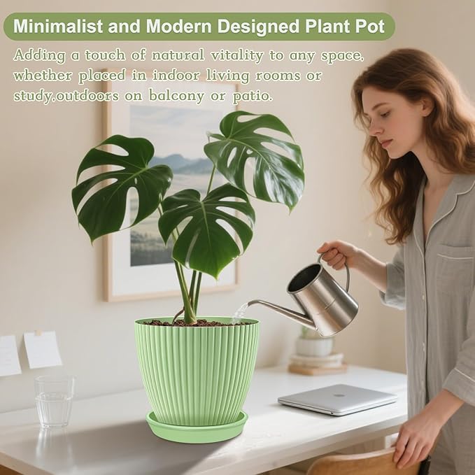 - 【Durable Plastic Construction 】-These flowerpots are made of high-temperature-resistant plastic,lightweight yet sturdy,the surface has undergone special treatment,able to withstand intense sunlight,rain and indoor humidity without cracking or fading,ensuring durability.Use them safely in gardens,balconies or living rooms.