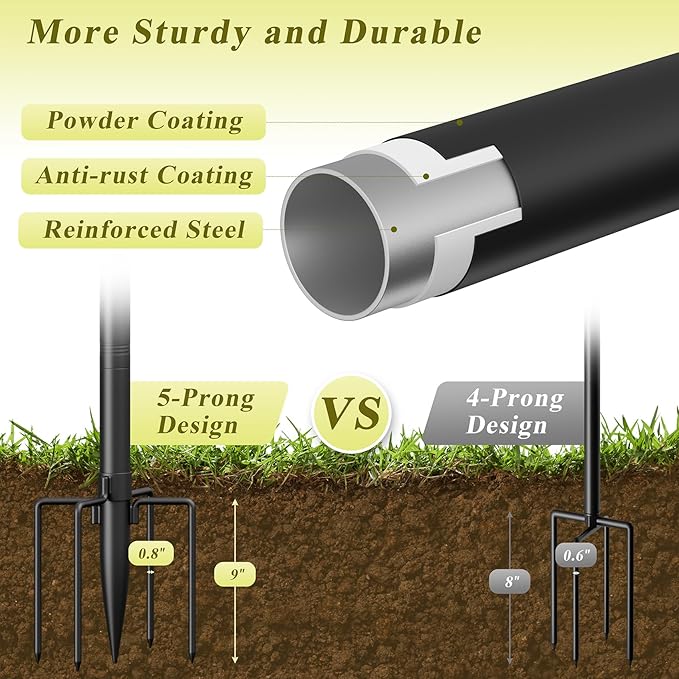 - ๐ฑ Soil & Fence Install: String light poles for outside deliver instant ambiance in 5 minsโno extra parts! Push the fork base into soil (add concrete for stability) or clip/screw directly onto fences. Effortlessly hang outdoor light poles for string lights with outdoor patio decor or pool decorations outdoor