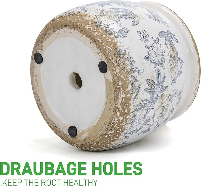 - 【Exquisite Vintage Design】 Our ceramic flower pots feature vintage ice crackle patterns and distressed craftsmanship, with exquisite floral designs that can perfectly complement any decor style. Our ceramic planters for indoor plants and outdoor plants is always eye-catching.