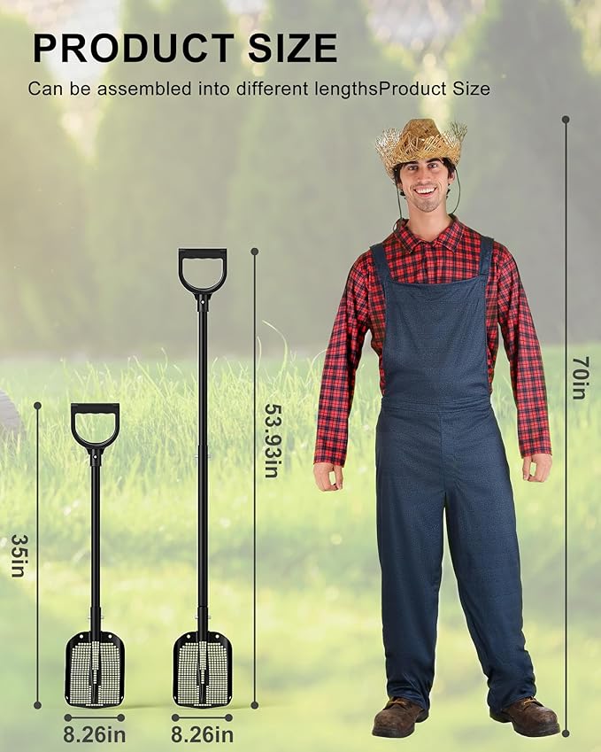 53.93 Inch Sifting Shovel, Heavy Duty Sand Sifter Square Cleaning Scoop Detachable 35-inch Short Sifter for Beach Chicken Coop/Animal House Poop Shovel