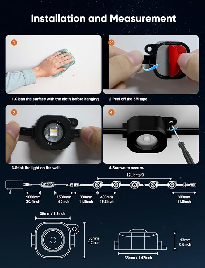 - Install Easily: This eave light is easy to install with self-adhesive backing and screw-in fixing, suitable for any size or shape. Whether you're hosting a family gathering, spending quality time with friends, or seeking peaceful moments alone, our lights provide the perfect ambiance to match day or night.