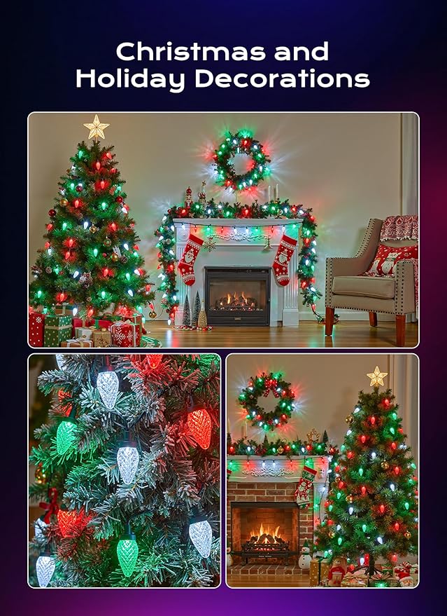 - 【Stylish Christmas Decorations】Impact-resistant, shatterproof C9 LED bulbs, perfect for Christmas, birthdays, weddings, and more. Enhances Christmas trees, wreaths, porches, patios, and more with bright and beautiful illumination.