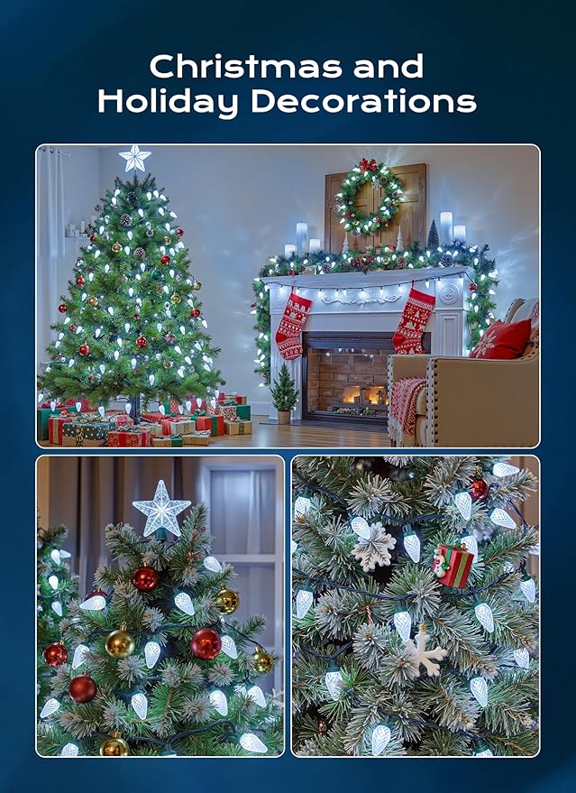 - 【Stylish Christmas Decorations】Impact-resistant, shatterproof C9 LED bulbs, perfect for Christmas, birthdays, weddings, and more. Enhances Christmas trees, wreaths, porches, patios, and more with bright and beautiful illumination.