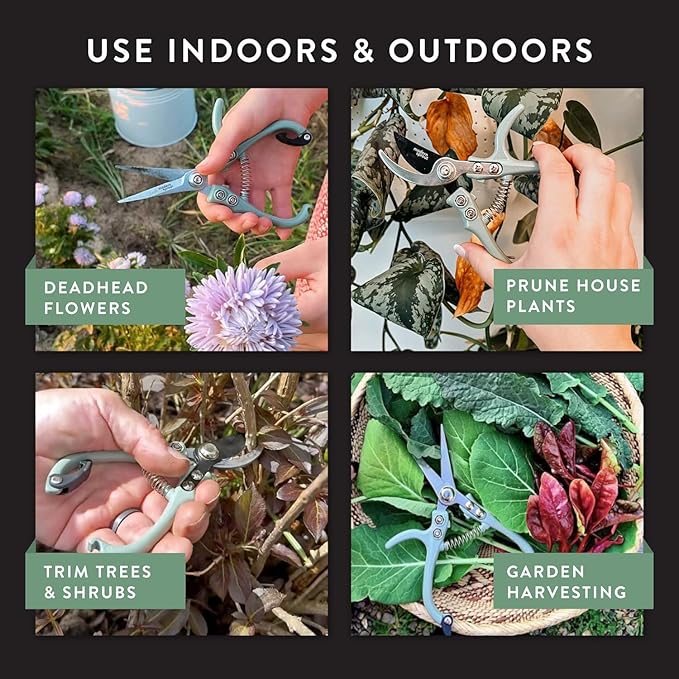 - Versatile Garden Care Set: This blister packed Modern Sprout set includes both precision pruning shears & durable garden pruners to cover a wide range of gardening tasks; Whether you’re using shears to trim herbs, snipping flowers, maintaining shrubs, or use heavy duty pruners for gardening to prune branches up to ½" diameter, this combo ensures clean, healthy cuts every time; Perfect for both indoor & outdoor use, it’s an essential addition to your garden accessories and garden essentials