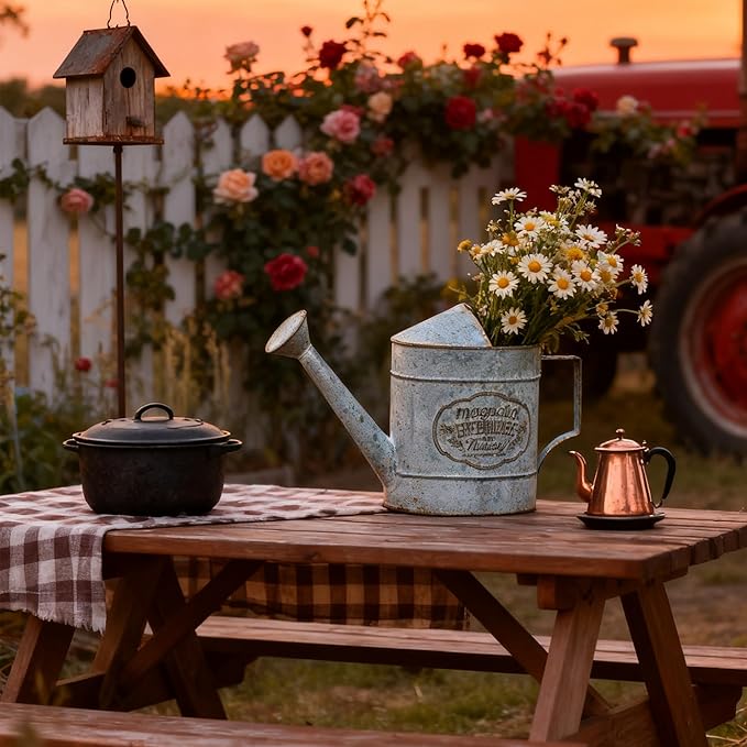 - 【DECORATIVE AND PRACTICAL】 Not just a simple gardening tool, this watering can combines functionality with aesthetics. Its charming design makes it a great addition to any farmhouse - style, shabby - chic, or rustic - themed decor. Display it on a shelf, patio, or near your plants to enhance the overall ambiance.