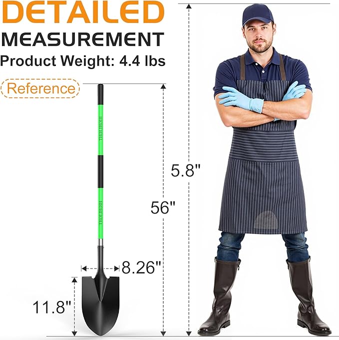 - ๐ชดใ๐๐ถ๐บ๐ฒ๐ป๐๐ถ๐ผ๐ปใThe 56 inches shovel for digging is suitable for adults, the right size can reduce the pressure on the waist, and long-time users will not feel tired.