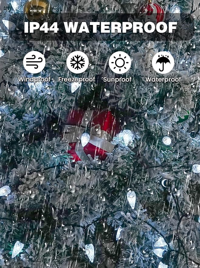 - IP44 Waterproof: These outdoor Christmas lights feature IP44 waterproof performance, makes these led string lights ideal for indoor and outdoor Christmas decor. For your safety, keep the plug part of the power supply absolutely dry