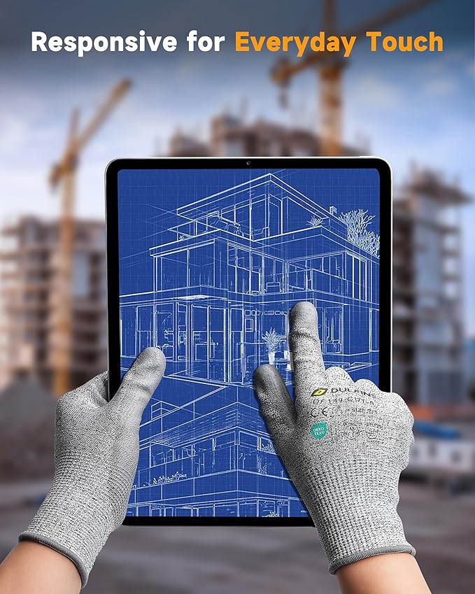 DULFINE ANSI A3 Cut Resistant Work Gloves for Men and Women, PU Coated,Ideal for Woodworking, Glass Cutting, Construction, Cargo Handling, Car Repair(Extra Large)