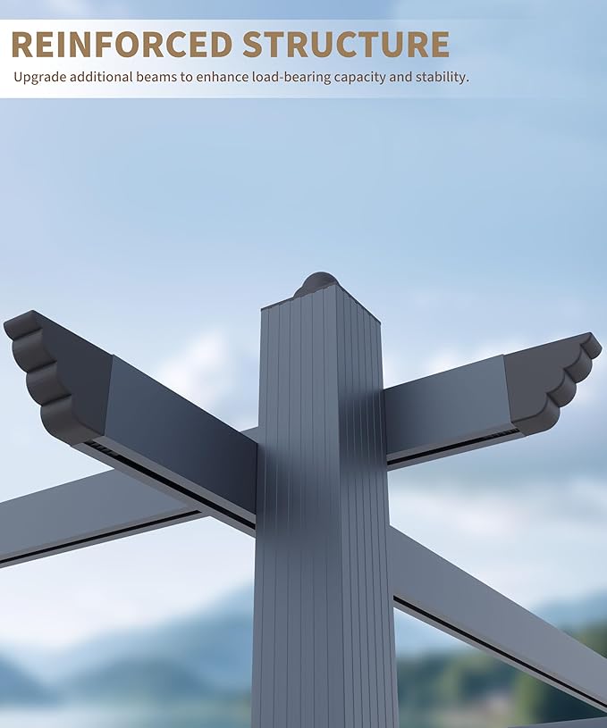 - 【Industrial-Strength Durability】Built to last, our patio pergola features a 1mm reinforced wall and a premium powder-coated finish for ultimate rust resistance. Engineered to withstand rain, snow, or intense sun, this pergola maintains its sturdy structure year after year