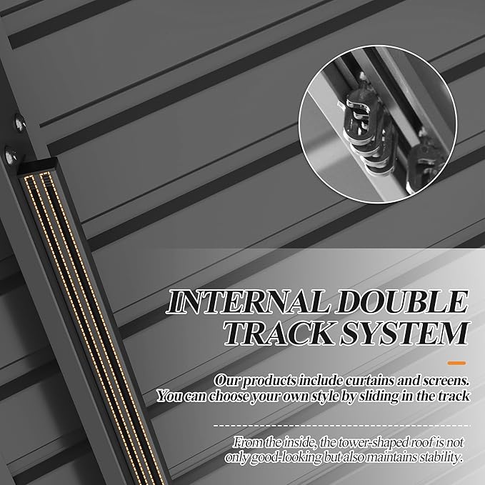 - ⛱️EASY ASSEMBLY: Comes with detailed tutorial installation manual, Installation will take roughly 2-4 hours and 2-5 people are recommended. Package contains 5 boxes, The outer box may arrive in different time periods. Safety measures and professional installation are highly recommended