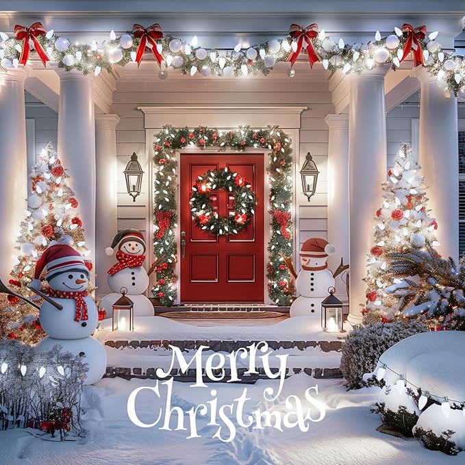 Brightown 2 Pack White C9 LED Christmas Lights Outdoor, 33ft 50 LED Waterproof Strawberry String Lights, Plug-in Extendable Green Wire Lights String for Outdoor Indoor Patio Party Decoration