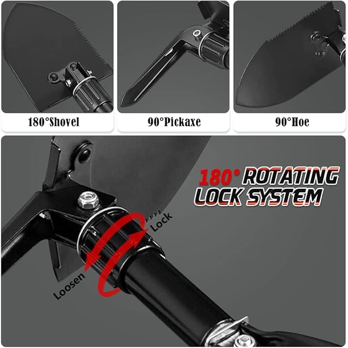 - 【Compact Structure & High Performance】The large camping shovel measures 24 inches long and 6.1 inches wide, folding down to just 10.7 inches. It serves as an emergency tool and is ideal for camping, gardening, digging, shoveling, sawing, chopping, and hole-digging. Includes a nylon storage bag for lightweight portability.