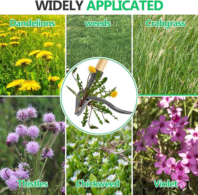 - 【Brand New Upgrade, Buy with Confidence】: This scientifically designed weed remover tool effectively eradicates weeds, including dandelions, crabgrass, thistle, quack grass, plantain, clover, burdock, and other invasive weeds. It contains no harmful chemicals, making it safe for children, pets, and the environment. If you have any questions, please feel free to contact us, and we will provide you with a satisfactory solution within 24 hours. Lifetime warranty!