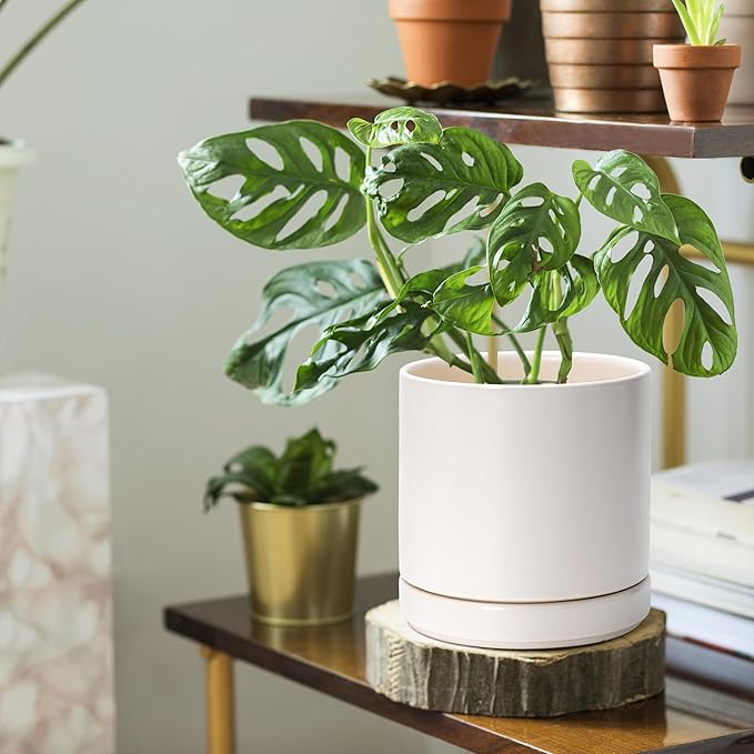 - Drainage holes and detachable/perfectly fitting ceramic saucers included.