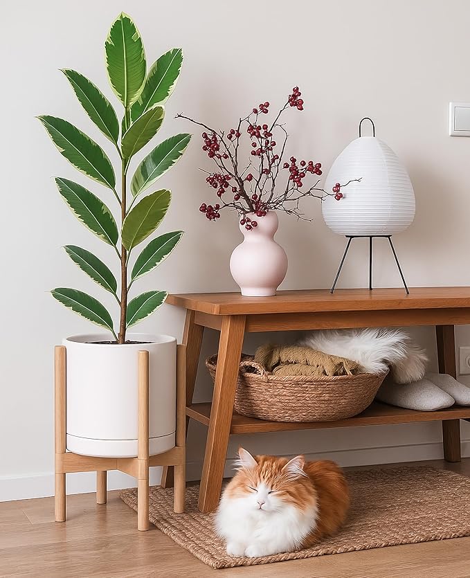 - A Complete Set: Mid-century ceramic planter, combined with a natural color, sculptural, solid wood stand that match perfectly together and looks great in anywhere.