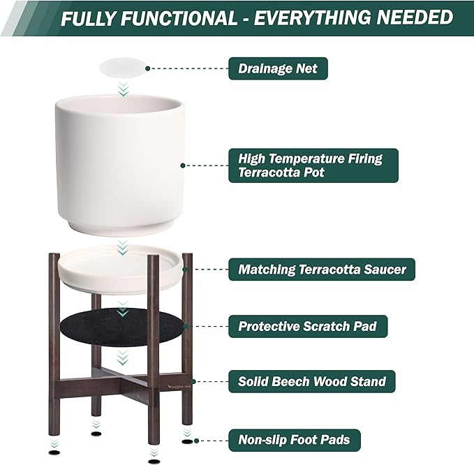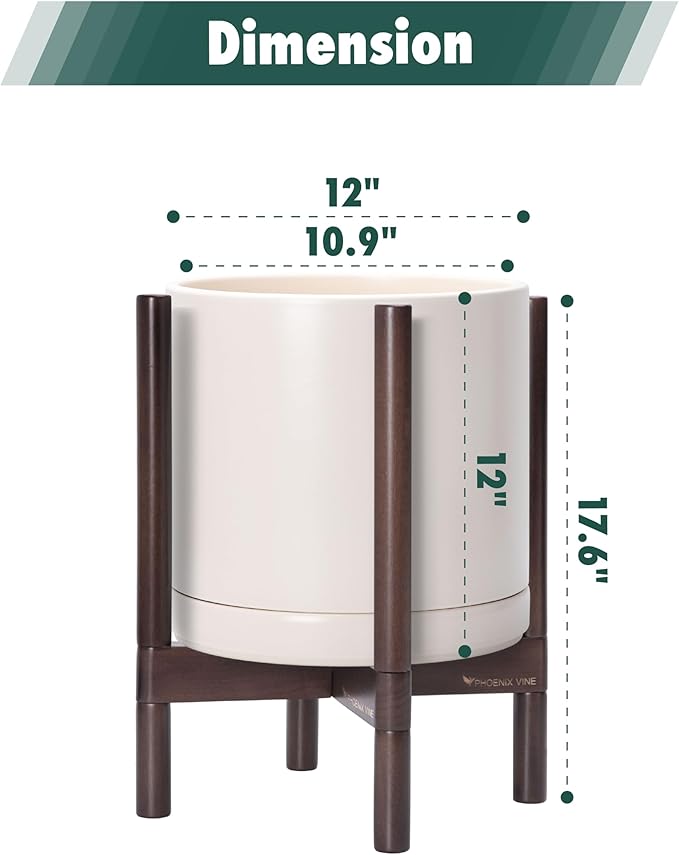 - A Complete Set: Mid-century ceramic planter, combined with a natural color, sculptural, solid wood stand that match perfectly together and looks great in anywhere.