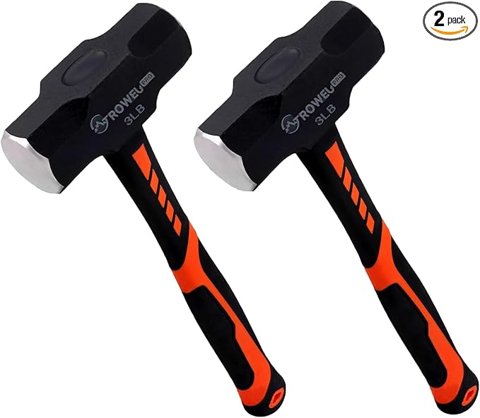 2 Pack 3lb Sledge hammer with 12.8 Inch Shock-Resistant Fiberglass Handle,Heavy Duty Drilling Crack Hammer with Forged Steel Head
