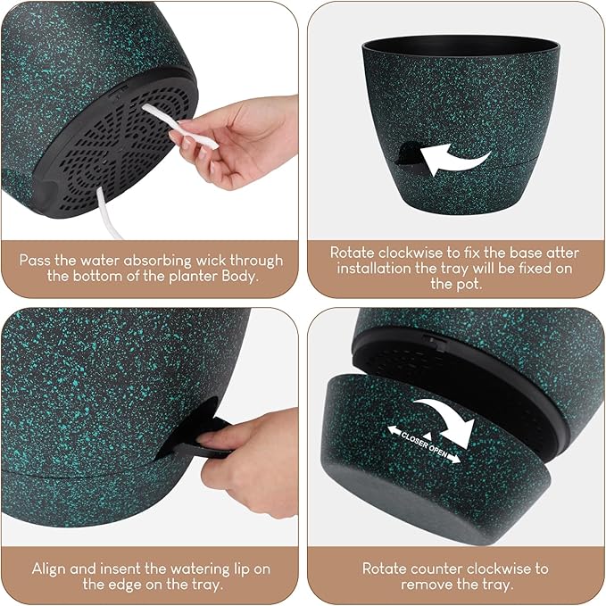 - [DEEP PLANTING SPACE]- 10/9/8/7.5/7 inch Self Watering Pot with deep reservoir makes it easy for when go on vocation that no need someone to come over water plants and flowers.