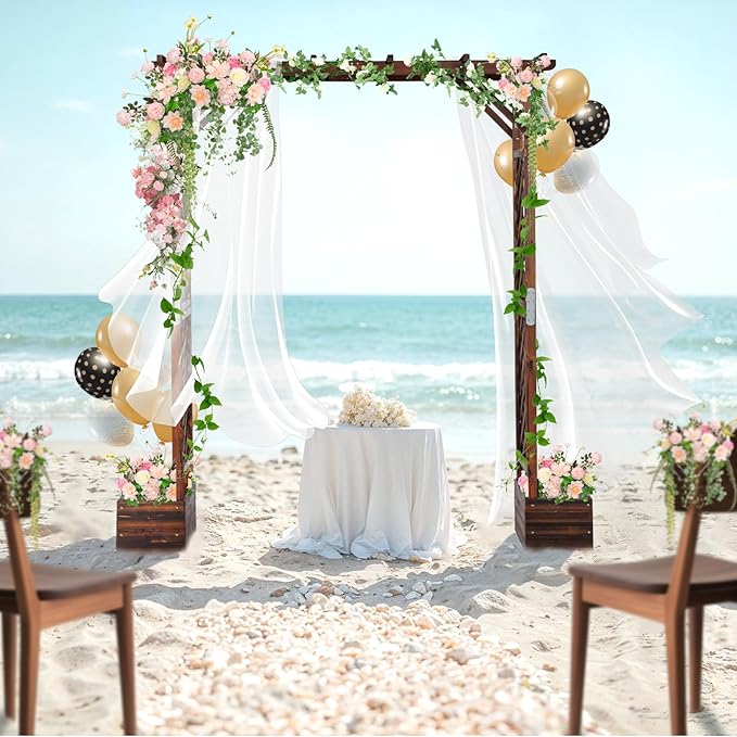 - 【Beautiful Design】 This elegant arch can be easily covered in beautiful vines, branches, colorful flowers, or delicate fabric, creating a surreal and sophisticated setting for the ceremony. With planter, you can local any place
