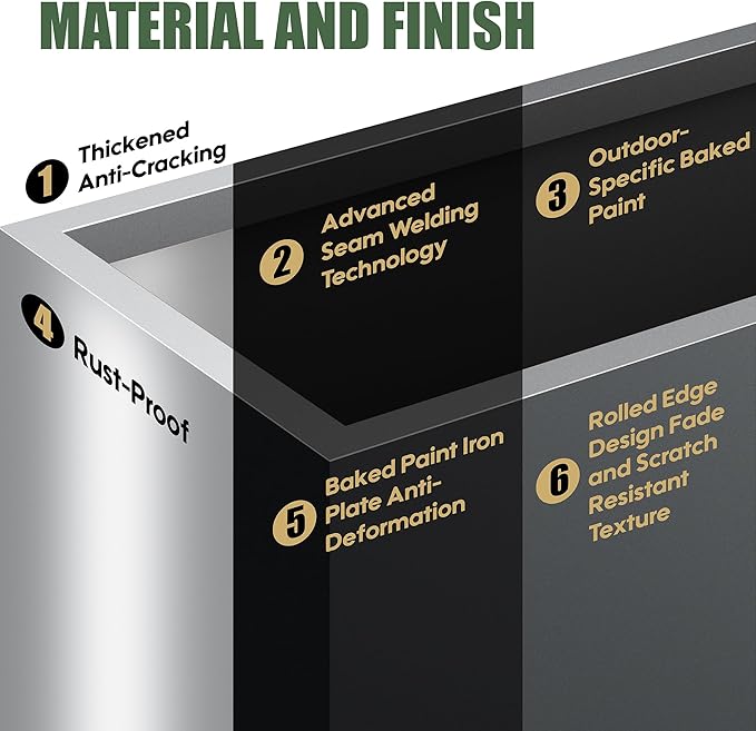- Military-Grade Rust Defense:The metal planter box forged from outdoor iron with triple-layer baked enamel finish, giving it a luxurious metallic finish and unique texture, ensures that planter is durable and strong,our planters laugh off coastal salt, Midwest snow, and desert sun.
